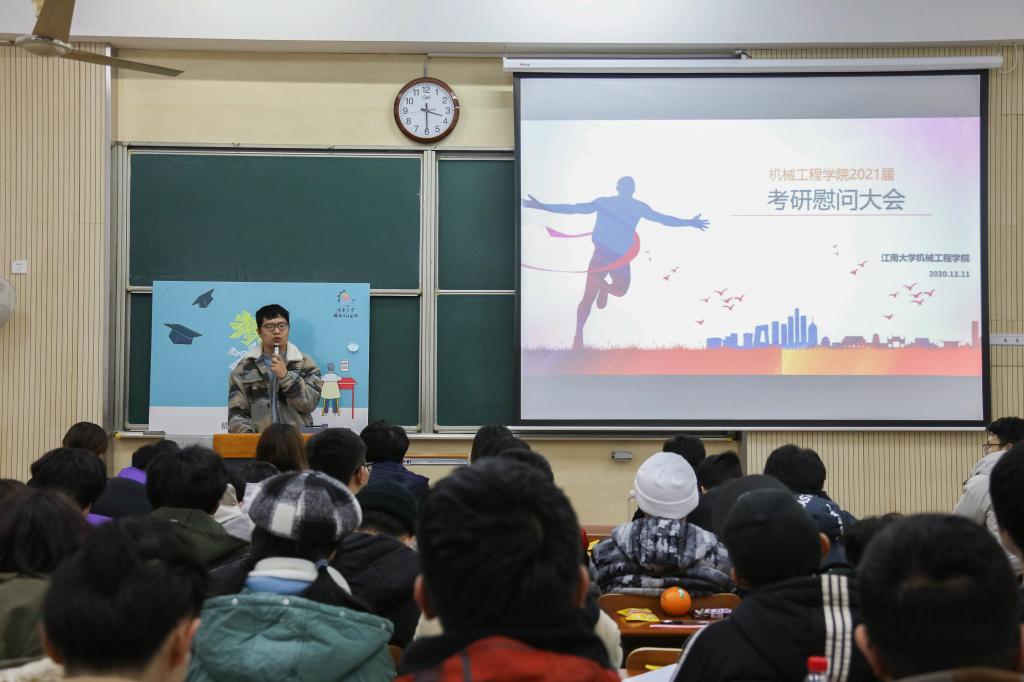 12月11日下午,机械工程学院于第一教学楼A114教室举行2021届考研学生慰问大会。学院党委书记高雪梅、分团委书记缪可嘉、研究生辅导员孟召双、班主任钱陈豪,2021级的考研学生出席。慰问会由2017级辅导员孟飞主持。