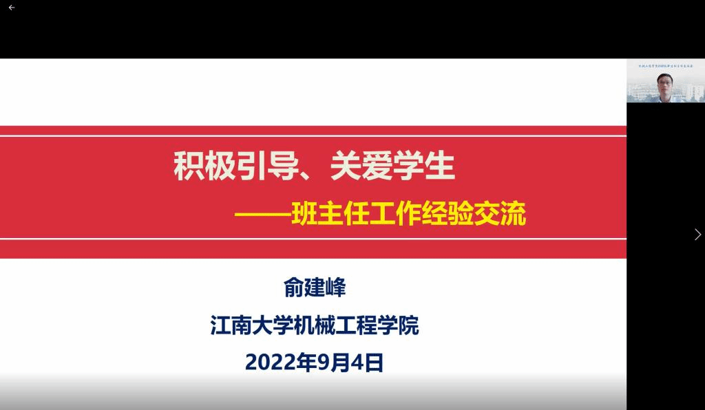 为做好2022级新生教育工作,加强班主任队伍建设,提升学院育人合力,9月4日上午,机械工程学院在线上召开2022级新生班主任交流会。学院党委副书记、副院长方俊、副院长俞建峰、全体2022级新生班主任及辅导员参与会议。