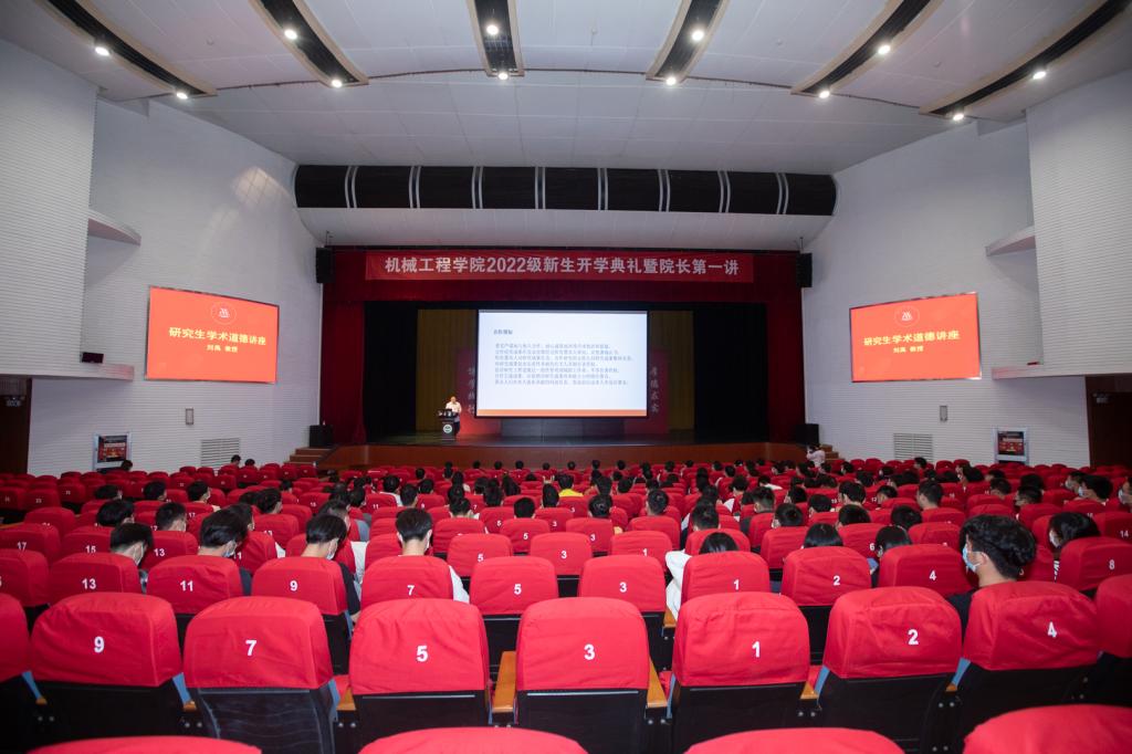 首先,刘禹表达了对机械工程学院252名研究生新生的欢迎,并对他们崭新的研究生学习生涯送上祝福。随后,他向同学们简要介绍了研究生学术不端的定义、分类以及检测情况,让同学们对学术不端有了更加深入的认识。他期望同学们在科研之路上要做到三点:多主动一点、多勤奋一点、多诚实一点。他指出,同学们在求学过程中要认真、务实、科学地完成论文撰写,主动了解研究所(课题组)的研究方向,学习师兄师姐身上的优秀品质,全面学习阅读文献与了解学科前沿。最后,他对所有新生提出希望:愿在座的每一位研究生都能成为具有科学精神的、优秀的人。