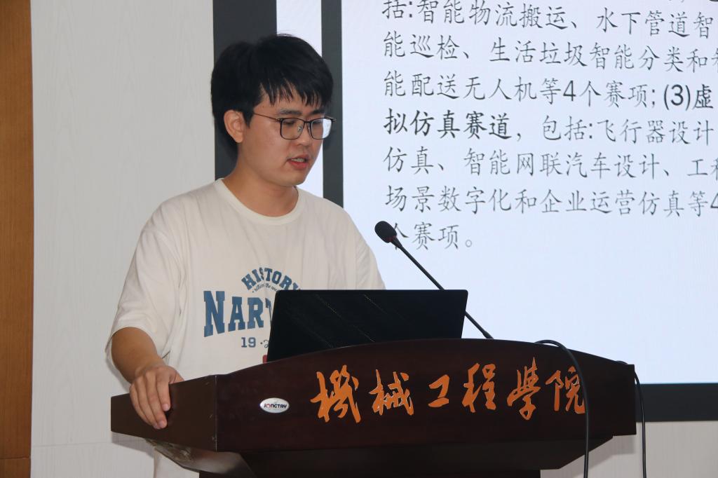 为提高机械学子的创新意识,增强学生学科竞赛的参与度,培育学院良好的科创氛围,10月18日晚,机械工程学院在机械楼C302会议室举办了全国大学生工程实践与创新能力竞赛宣讲会。此次宣讲会由机械工程学院机械基础系副教授卢学玉、机械学硕2201班学生叶鹏主讲,邓铭喆同学主持,辅导员宋京姝及部分2020级、2021级、2022级学生参与。
