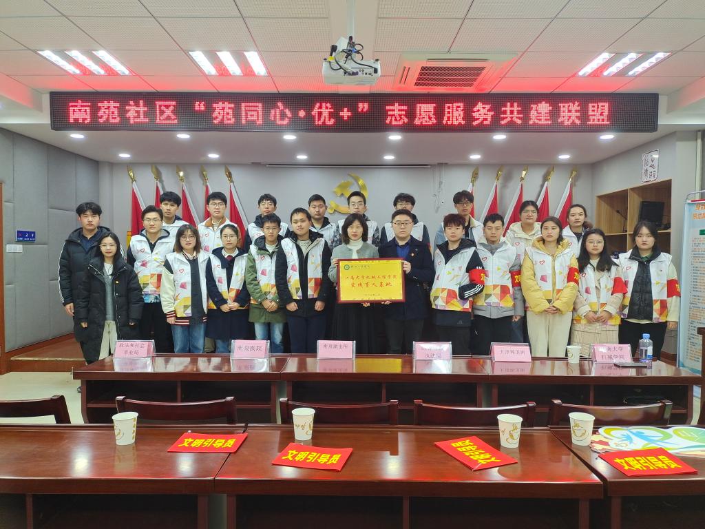 为不断提升实践育人实效,打造出长期化、常态化、优质化学生实践平台,3月2日上午,“苑同心·优+”志愿服务共建联盟启动仪式在无锡市滨湖区雪浪街道南苑社区正式举办。江南大学研究生院副院长武美萍、机械工程学院分团委书记孟召双、辅导员余骏皓、学生党团员代表等参加此次活动。