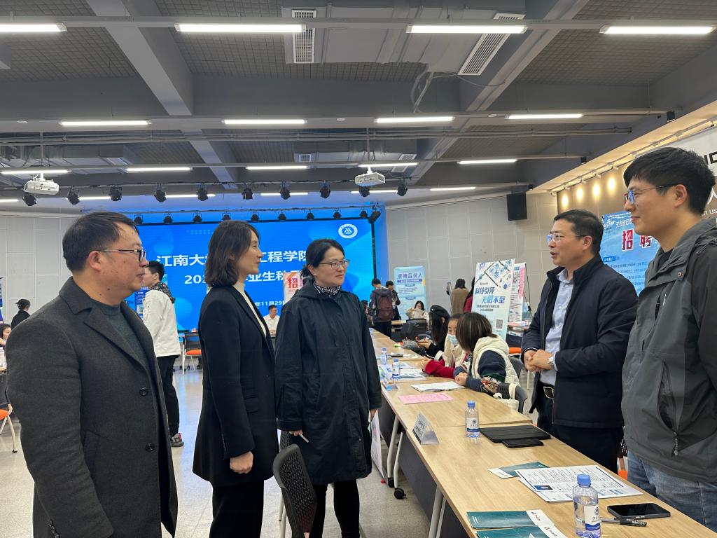 江南大学就业指导中心主任、学生工作处副处长单筱婷,机械工程学院党委副书记、副院长刘升恒,副院长钱善华,副院长王东祥来到招聘会现场,在展位前与用人单位、求职学生互动交流,进一步了解企业用人需求和学生求职诉求,鼓励毕业生树立正确择业观,主动获取就业信息,提升求职技能,把握就业机遇,尽快找到自己心仪的工作。