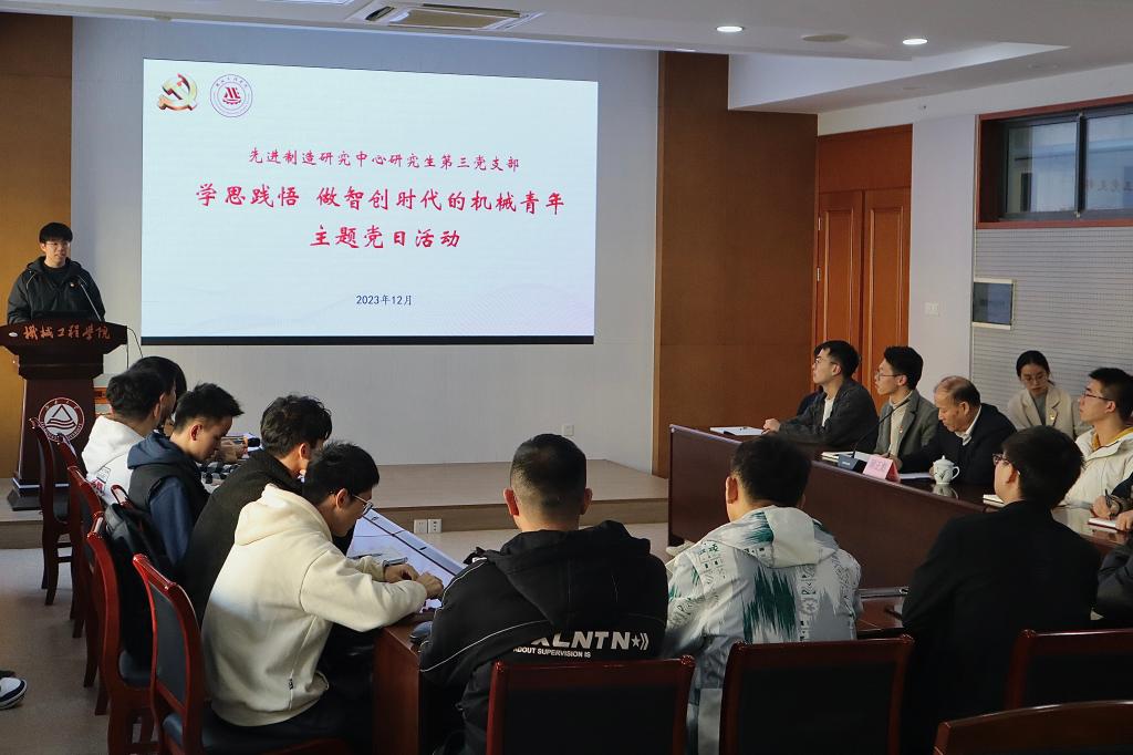 12月8日下午,江南大学党委常委、副校长顾正彪参加机械工程学院先进制造研究中心研究生第三党支部“学思践悟,做智创时代的机械青年”主题党日活动。机械工程学院党委书记高雪梅,党委副书记、副院长刘升恒,辅导员宋京姝列席,先进制造研究中心研究生第三党支部全体党员参加。本次活动由先进制造研究中心研究生第三党支部书记张权主持。