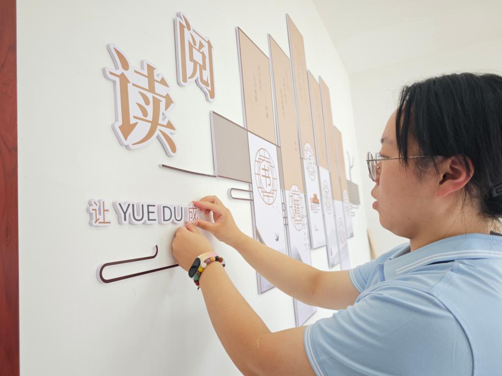 实践团成员布置读书阅览室
