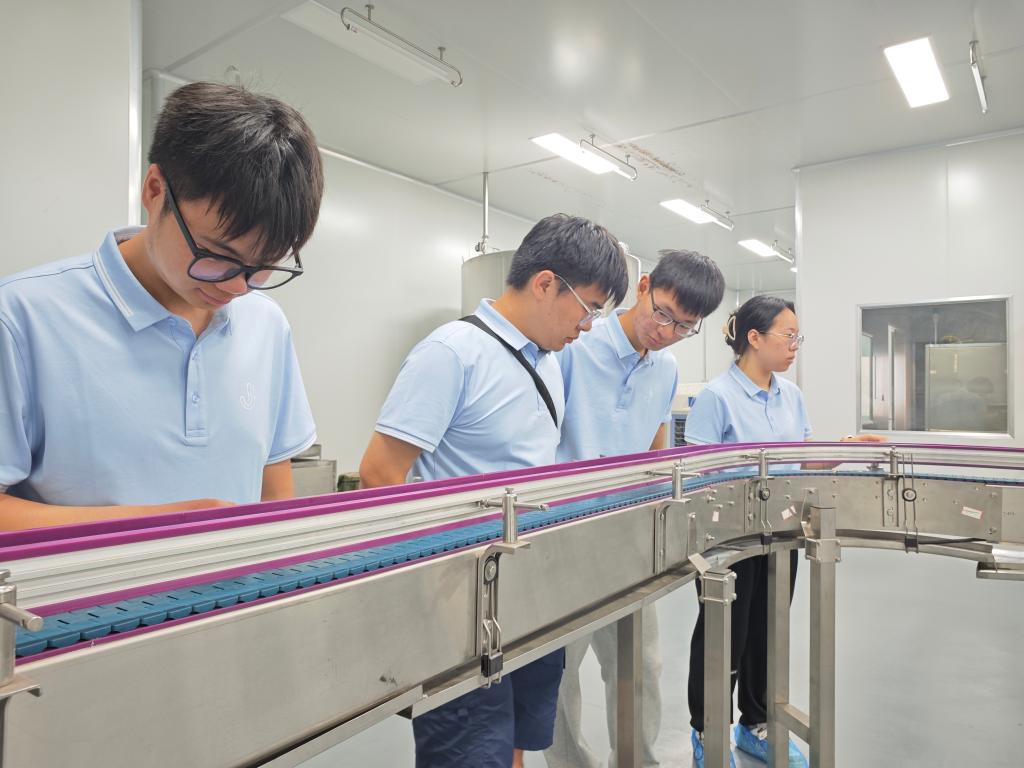 实践团成员参观康汇百年食品公司生产线