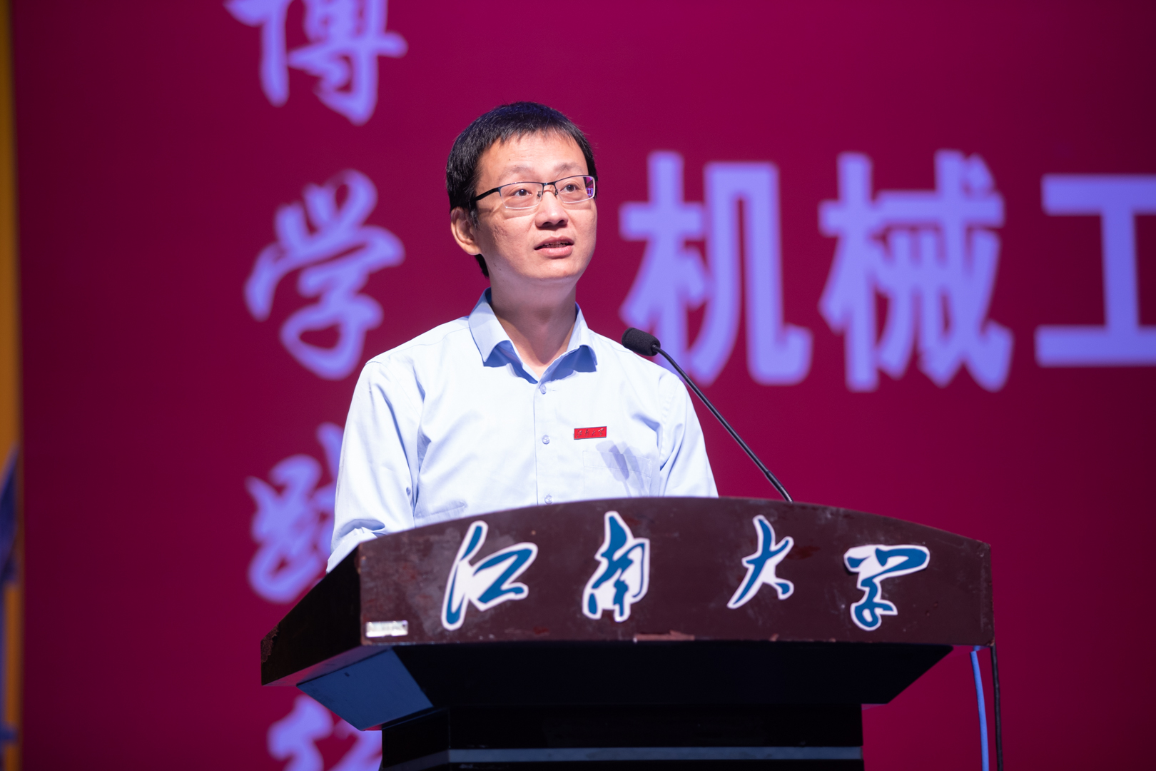 紧接着,机械电子系系主任、机器人2201班班主任,江南大学第十八届“我最喜爱的老师”荣誉称号获得者蒋毅老师作为教师代表发言。他结合自己指导学生的经历,给新生提出三点建议:一要延续奋斗拼搏的学习势头,以学习作为大学第一要务;二要调整心态,学会自主规划自己的生活与学习;三要养成良好的学习、生活习惯,高效管理时间。