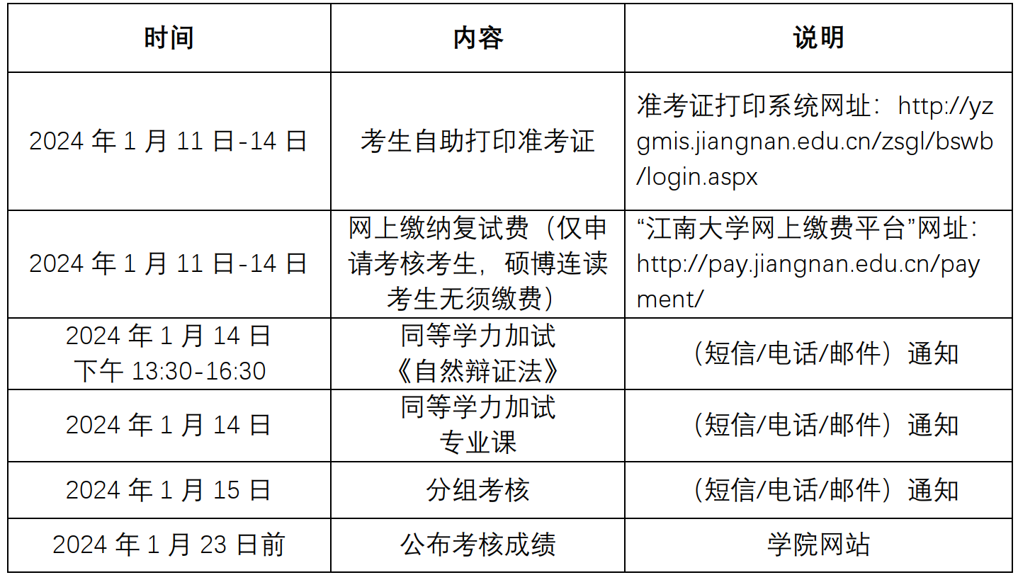 申请考核考生登录“江南大学网上缴费平台” (网址:http://pay.jiangnan.edu.cn/payment/)或搜索微信公众号“江南大学财务处”,在“业务办理”中选“学生缴费”。考生账号已开通,切勿自行注册。复试收费标准:80元/生(仅申请考核考生,硕博连读考生无须缴费)。