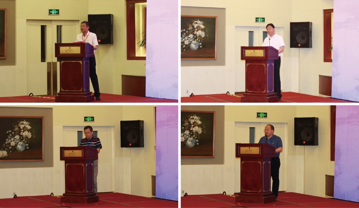 江南大学校长陈卫院士(上左)、无锡市科协陈晓华主席(上右)、中国机械工程学会材料分会胡军秘书长(下左)以及中国机械工程学会材料分会青年工作委员会主任蔺永诚教授(下右)致辞