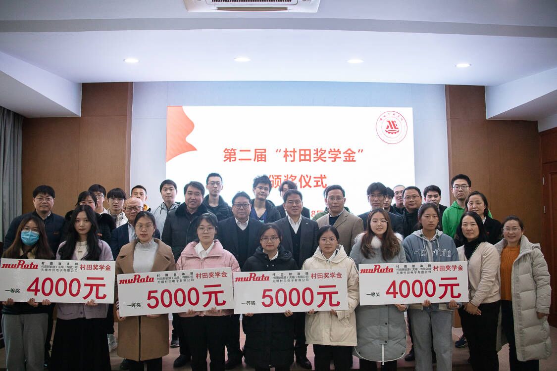 12月28日下午,第二届“村田奖学金”颁奖仪式在机械工程学院C302会议室举行。无锡村田电子有限公司和村田新能源(无锡)有限公司董事长山崎俊信,无锡村田电子有限公司总经理錦織巧、副总经理陈俊,村田新能源(无锡)有限公司副总经理辻笃,无锡村田电子有限公司管理部部长下枝圭介等13位企业代表;化学与材料工程学院党委书记潘庆伟,院党委副书记、副院长田卫平;法学院党委书记杨杰,党委副书记、副院长张慧琪;机械工程学院党委书记高雪梅,院党委副书记、副院长方俊;全体获奖学生及班集体代表出席。