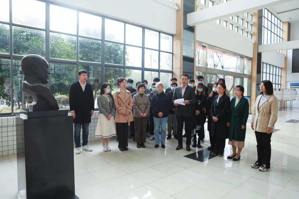 鸿鹄过处英才志,且将驰念寄春风。3月10日上午,江南大学教育基金会及机械工程学院、君远学院的师生代表在君远学院一楼大厅唐翔千先生塑像前,举行了唐翔千先生逝世四周年追思活动。当前疫情形势严峻,君远学院师生未能如往年一样到陵园祭扫缅怀唐氏先贤,为寄哀思之情,表感怀之意,特举办追思活动。星空体育登录网页入口党委书记高雪梅,社会资源处副处长窦新华,君远学院副院长(主持工作)李可,君远学院理事、原江南大学副校长王武,君远学院理事、原君远学院院长张秋菊等师生代表参加活动。活动由君远学院辅导员高鑫主持。