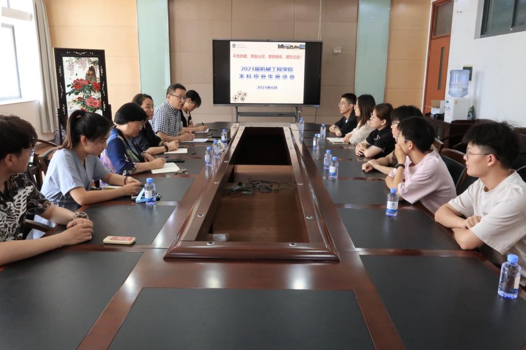 为深入开展学习贯彻习近平新时代中国特色社会主义思想主题教育,以调查研究直击发展问题,听取应届毕业生对学院教学工作的意见和建议,更好地发挥学生参与学院高质量人才培养的学生智慧与谏言作用,6月15日上午,机械工程学院在C310会议室召开了“不负热爱、奔赴山河,勇担使命、建功立业”主题的2023届本科毕业生座谈会。学院党委书记高雪梅、副院长钱善华、分团委书记孟召双、教务办沈贤、辅导员萧欣彤,以及2023届本科毕业生代表出席座谈会。座谈会由钱善华主持。