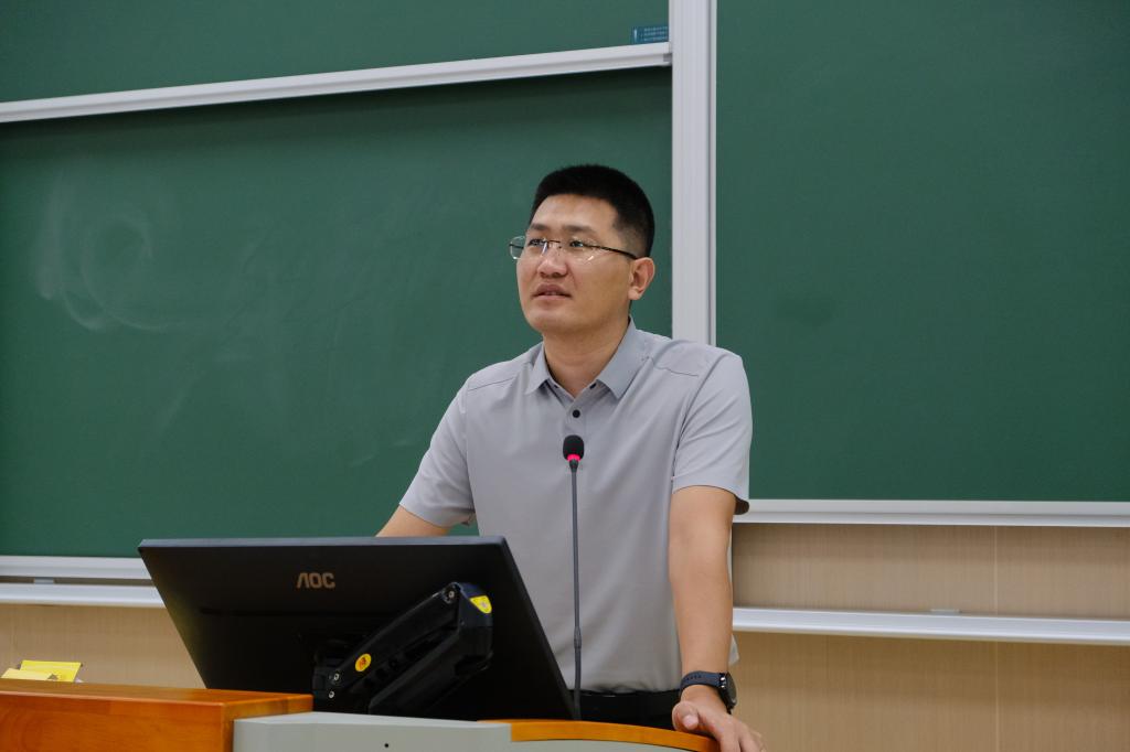 入党启蒙教育讲座上,余骏皓通过播放中国共产党员国际形象网宣片及分享优秀党员事迹帮助新生认识“什么是中共党员”。他抛出“为什么想入党”这一问题并引导帮助在座学生端正入党动机,他详细介绍了入党的流程及规范要求,鼓励新生们要以身边优秀党员为榜样,看齐靠拢,提升意识觉悟。