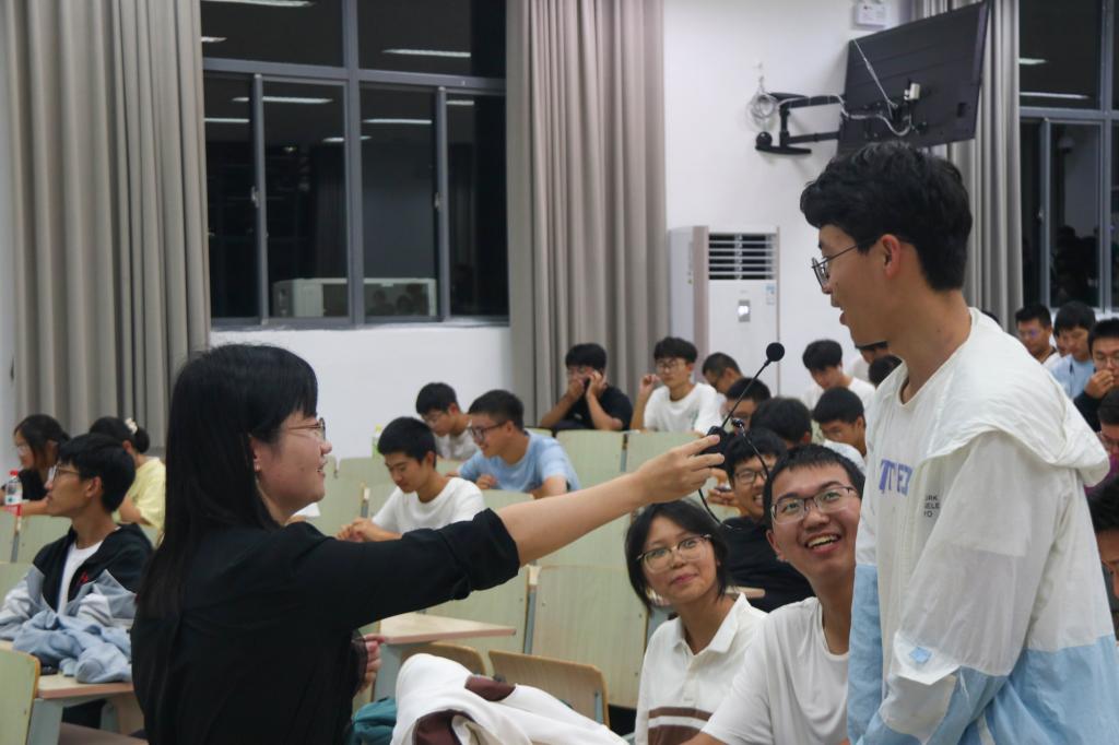 讲座伊始,董霞通过组织同学们做放松保健操活跃现场氛围。她以丰富的心理健康教育技能,结合实际案例给新生深入剖析了当下高校学生宿舍中可能存在的心理问题。她抛出“你觉得宿舍关系有多重要?”“你对当前的宿舍关系满意吗?”一系列发人深省的问题,引导学生深入思考什么是健康的宿舍关系。接着,董霞从“宿舍关系对我的影响”“宿舍人际沟通”“大学生心理危机的识别”“遇到心理危机,宿舍成员如何做”四个方面,结合现实生活案例与大学生心理健康数据,生动地讲述了宿舍内人际关系相处的方法。