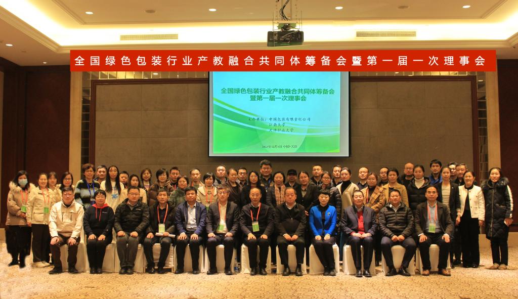12月6日至7号,中国包装有限责任公司、江南大学及天津职业大学共同牵头组建的全国绿色包装行业产教融合共同体成立大会及第一届一次理事会在津召开,中国包装联合会副会长兼执行秘书长韩雪山,副会长王利,中国包装有限责任公司党委副书记、董事、副总经理宋奎运,党委委员、副总经理何冰,江南大学党委常委、统战部部长朱飞,机械工程学院副院长钱善华,天津职业大学党委副书记、校长郑清春,副校长刘石英,机械工程学院包装工程系有关负责人出席会议,参加会议的还有来自高等院校、行业协会、企业的嘉宾共计200余位代表参会。理事会和成立大会分别由郑清春和刘石英主持。
