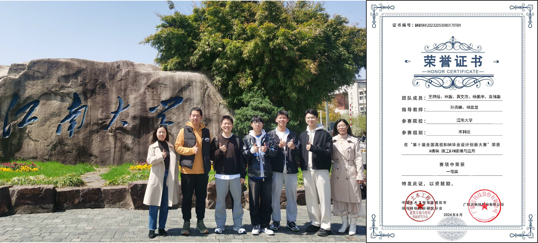 在付李、成虎、杨兰兰、孙秀丽、张清峰等老师的指导下,土木工程专业王祥灿、林瀚、黄文浩、杨鹏宇和设计学院袁伟瀚同学共同完成的作品,获最高奖项全国一等奖,为星空体育登录网页入口参加该赛事以来在A模块(施工BIM建模与应用)取得的最好成绩。