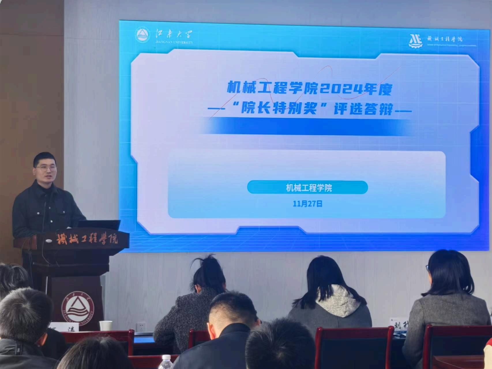 11月27日,机械工程学院举行2024年度“院长特别奖”评选答辩会。学院党委副书记、副院长刘升恒,学工办主任兼分团委书记李诗炜及各年级辅导员出席本次答辩会并担任现场评委。学院自10月份启动2024年度“院长特别奖”评选,经过个人申请、资格审查、学院初审等环节,20名优秀学子进入最终答辩环节。